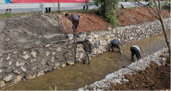 在弋阳县大数据发展服务中心漆工镇洋泥畈生态清洁小流域治理建设项目施工现场,挖掘机正在开挖渠道,工人忙着挡土墙砌筑,浇灌水泥,一派紧张有序的施工场景。此前,该沟渠狭窄,淤积严重,杂草丛生,严重影响群众生产、生活。